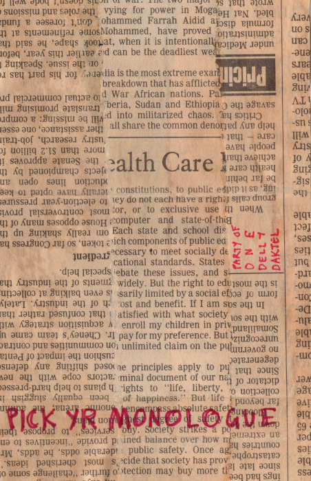 Party of One / Delly Daktel - Pick Yr Monologue (1992) [Sonic Enemy, cassette]