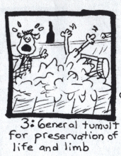 | LUDOVICO: Of all barkeeps I have encountered, you are the most contemptible, you are the most temerous, you are, ahh, I feel it rising in my throat! Yes, deceitful barkeep, you richly deserve it, you richly--ah---it's about to thunder! Yes, yes! My proclamation is wrung----- | |