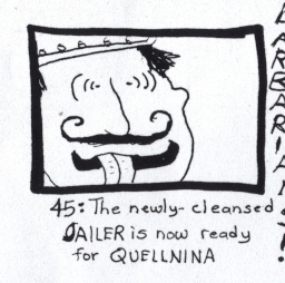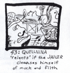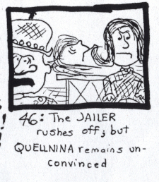 JAILER: You'll relent, then? If I untie you? QUELLNINA: I have little choice, I fear. Untie me... Oh. Your years of residence in the pit cause you to reek. Clean yourself first. JAILER: For the ex-empress? Yes. Yes, I will, yes. A splash of water from the vat will do. |