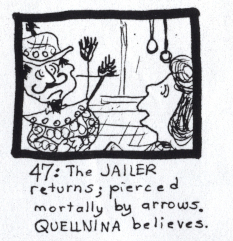 LUDOVICO: The jailer returns. JAILER: Your bucket. Catch it, if you can. Now, then, Quellnina... heheh... ehehe... QUELLNINA: Do you hear it? JAILER: I hear nothing. QUELLNINA: It's true, then. JAILER: What's true? |