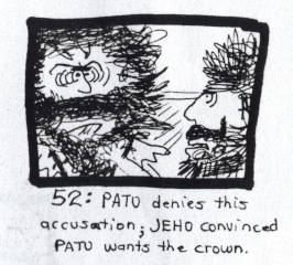 BARBARIANS: Jeho, Jeho! Patu told us so! PATU: Not true! I wanted the best for you! BARBARIANS: Jeho! Jeho! Patu told us to eat the people's flesh first! PATU: Not true! I only--- JEHO: Patu. Yes, I should have known. I've known for a long time. You wanted to be in the kingly tent. You want to beat me at royal bear wrestling, and take my head, Patu... |