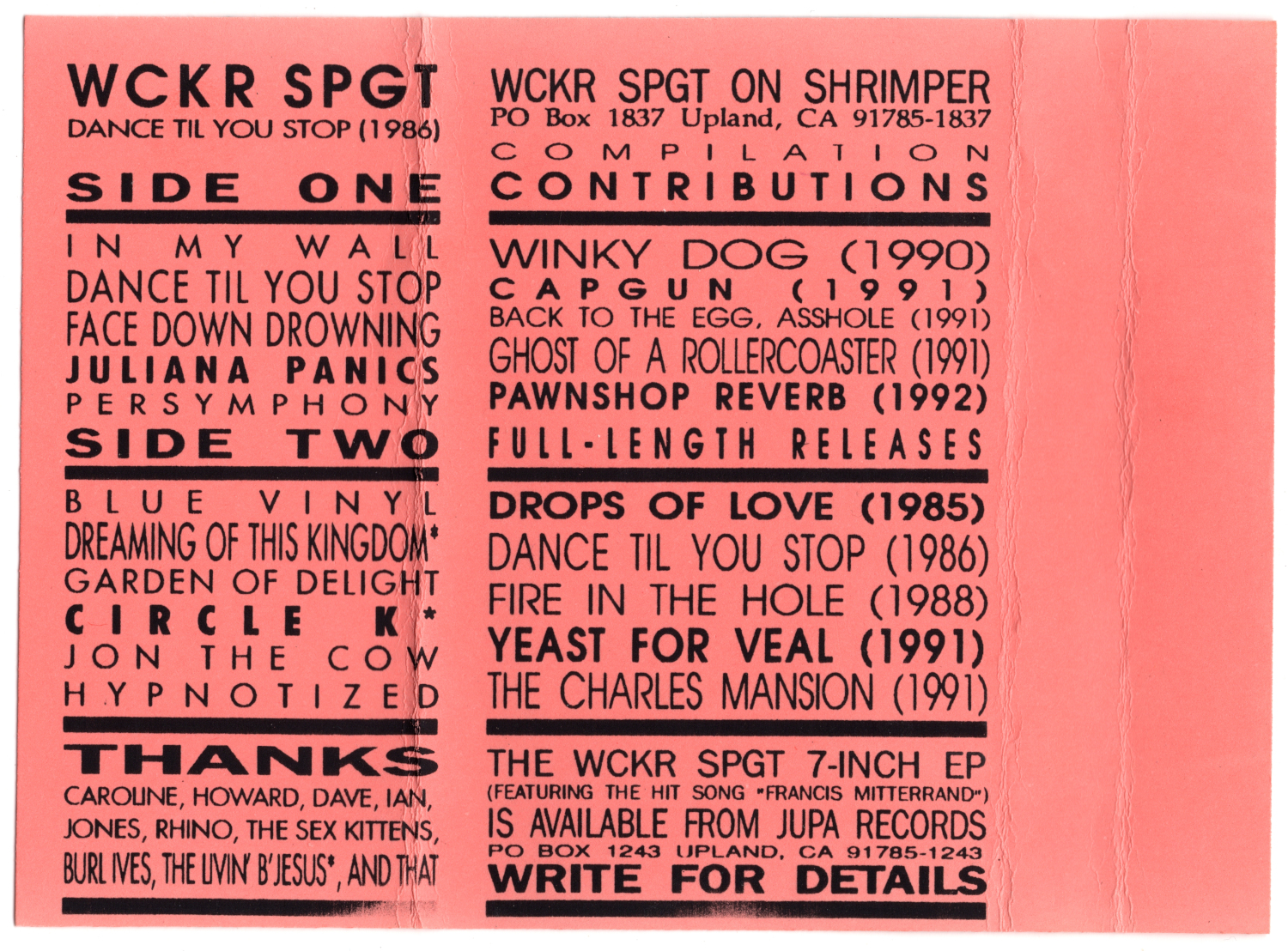 Wckr Spgt - Dance Til You Stop (1992) [Shrimper, SHR30, Cassette]