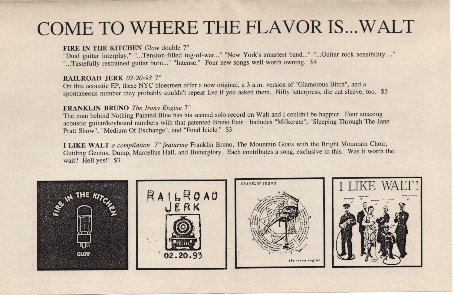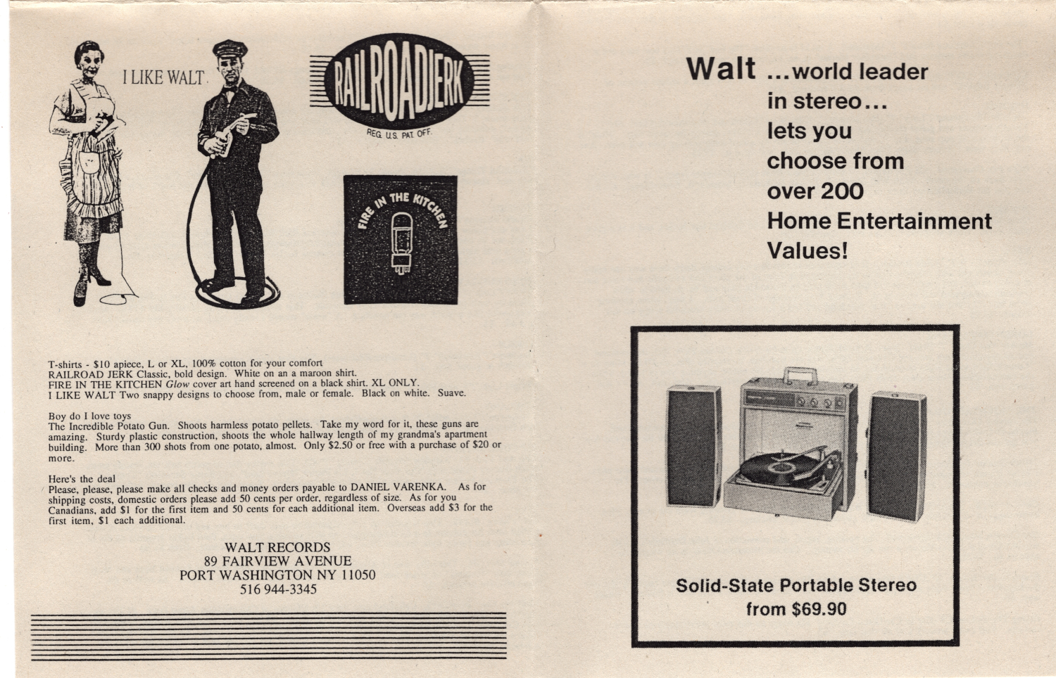 Despite the name of this 7", this isn't the Walt release where you can hear "The Irony Engine". You'll have to go forward one catalog number to WALT 004, I Like Walt! for that.